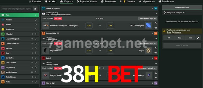 O 38H Bet oferece uma grande seleção de opções de apostas em e-sports com probabilidades competitivas
